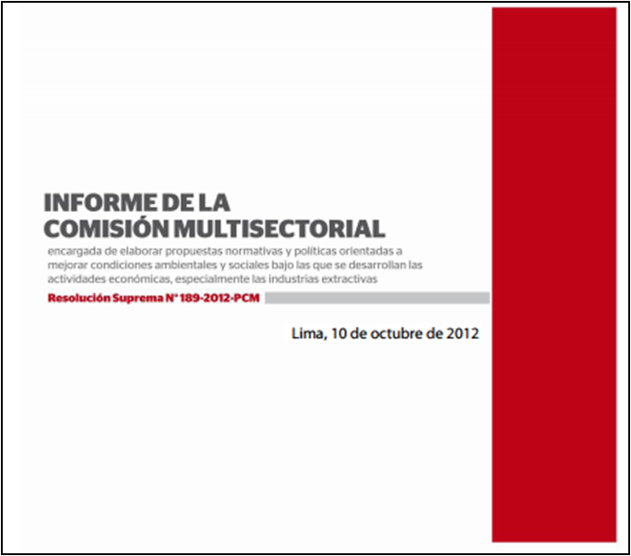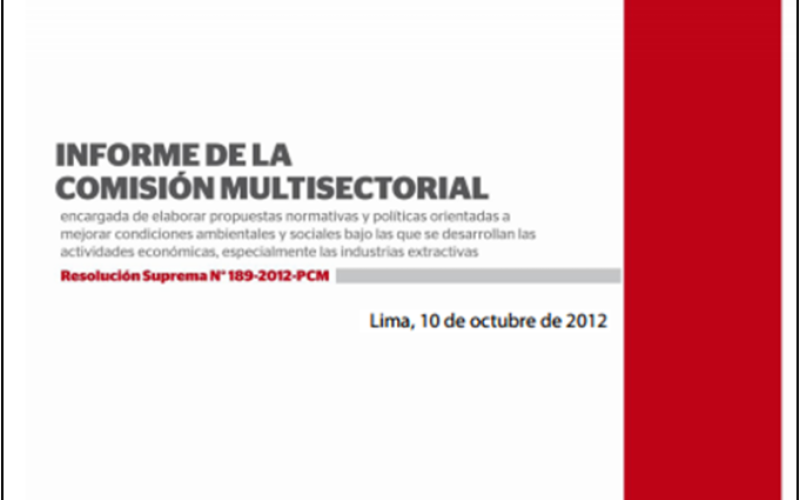 Informe de la Comisión Multisectorial encargada de elaborar propuestas normativas y políticas orientadas a mejorar condiciones ambientales y sociales bajo las que se desarrollan las actividades económicas, especialmente las industrias extractivas.