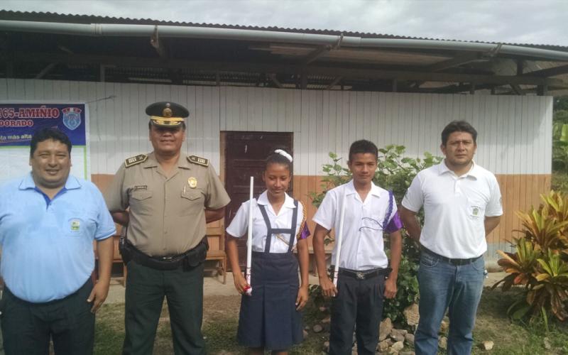 El día 08 del presente año se llevó a cabo la juramentación de los Policías Escolares en el Centro Poblado de Amiñio. Acto que se realizó en el patio central de la institución Educativa, ceremonia llena de civismo y emotividad, con la participación del Gerente de Seguridad Ciudadana y Fiscalización Municipal acompañado del Jefe de La Unidad de Transito y Seguridad Vial de la Municipalidad Provincial de El Dorado y el Comisario de la Policía Nacional del Perú de San José de Sisa los mismos que procedieron a juramentar a los estudiantes que fueron seleccionados por demostrar un aceptable rendimiento escolar. Los alumnos seleccionados se comprometieron a llevar dicho cargo con responsabilidad y compromiso de ser el ejemplo para sus demás compañeros.