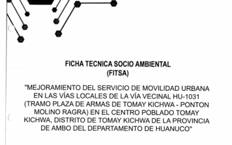 Mejoramiento del servicio de movilidad urbana en las vías locales de la vía vecinal hu-1031 (tramo plaza de armas de Tomay Kichwa Ponton Molino Ragra) en el Centro Poblado Tomay Kichwa, Distrito Tomay Kichwa, Provincia Ambo, Departamento Huánuco.