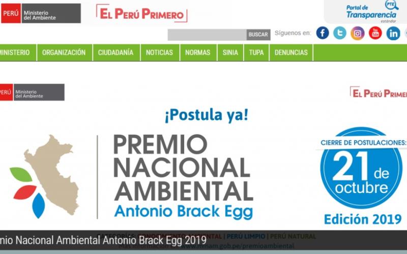 El Premio Nacional Ambiental Antonio Brack Egg ha decidido que se amplíe la fecha de presentación de postulaciones hasta el 21 de octubre.La Región Puno sólo tiene 04 postulaciones.
