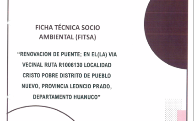 Renovación de puente; en el(la) via vecinal ruta r1006130 localidad Cristo Pobre, Distrito de Pueblo Nuevo, Provincia Leoncio Prado, Departamento Huanuco.