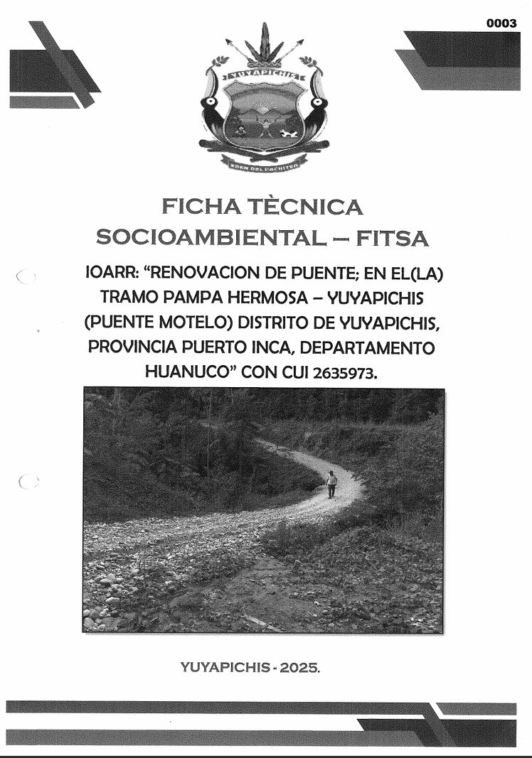 El proyecto responde a la necesidad de mejorar la conectividad y accesibilidad en el Caserío Pampa Hermosa de Quives, Distrito de Yuyapichis, Provincia y Departamento de Huánuco, Perú. Actualmente, un puente de losa de madera en mal estado pone en riesgo el tránsito de personas y vehículos. El puente a renovar, ubicado en el camino vecinal HU-1011 (PUENTE MOTELO): EMP. PE 18A TRAMO PAMPA HERMOSA-YUYAPICHIS, es fundamental para el desarrollo económico y social de la zona, cuyo principal sustento es la agricultura.