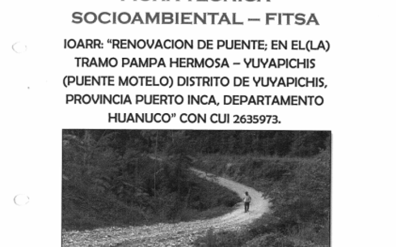 Renovación de puente; en el (la) tramo Pampa Hermosa – Yuyapichis (Puente Motelo) Distrito de Yuyapichis, Provincia Puerto Inca, Departamento de Huánuco.