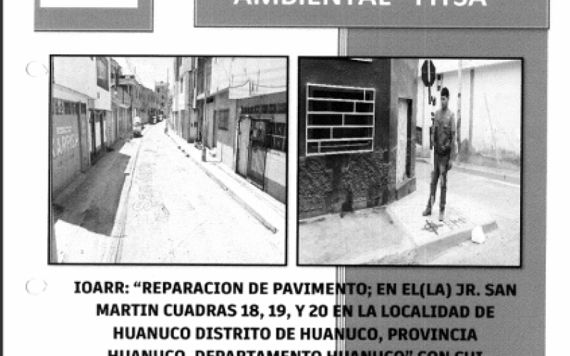 Reparación de pavimento; en el (la) jr. San Martín cuadras 18,19, y 20 en la Localidad de Huánuco Distrito de Huánuco, Provincia Huánuco, Departamento Huánuco.