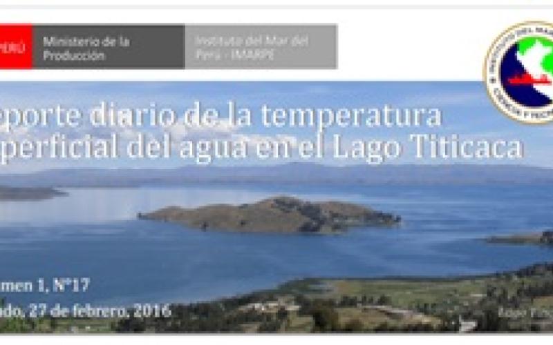 El Reporte Diario de la Temperatura Superficial del Agua en el Lago Titicaca es un producto de la Dirección General de Investigaciones Oceanográficas y Cambio Climático (DGIOCC) y del Laboratorio Descentralizado de Puno, ambos del Instituto del Mar del Perú (IMARPE). El Reporte tiene el propósito de informar a las sociedad de las variaciones diarias de la temperatura superficial del agua del lago Titicaca en las estaciones limnológicas que administra el IMARPE en las localidades de Puno, Juli y Ramis.