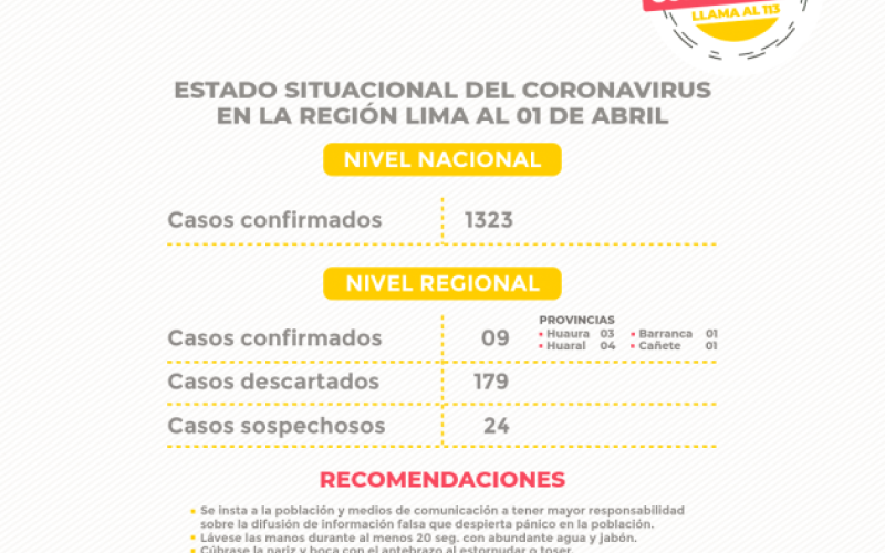 Región Lima: 09 casos confirmados │179 Casos descartados │24 casos sospechosos.