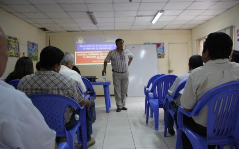 Reunión de coordinación para el tratamiento de residuos sólidos en el mercado La Hermelinda