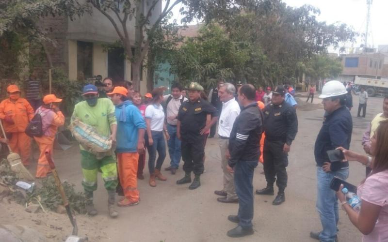 Con la presencia del alcalde de Trujillo, Elidio Espinoza Quispe, y funcionarios del Servicio de Gestión Ambiental de Trujillo (SEGAT), esta mañana se realizó una campaña de limpieza y atención de áreas verdes en el distrito de Florencia de Mora. Provisto de un cargador frontal, 3 volquetes; 2 propios y 1 de apoyo, conductores, supervisores y cuatro palaneros, el Servicio de Gestión Ambiental se dispuso a atender la solicitud que hiciera la comuna florenciana, referente al apoyo para la limpieza de zonas dentro del distrito que más lo necesita. Las acciones estuvieron dirigidas por el Arq. Fernando Díaz Alarcón, gerente de Gestión Ambiental y Gino Tisnado Ferrer, subgerente de Limpieza Pública, ambos funcionarios del SEGAT y, Alan Guevara, jefe de Limpieza Pública de Florencia de Mora. Ellos fueron los encargados de liderar las acciones que se ejecutaron en el cruce de las calles 5 de Noviembre con 20 de Junio. Asimismo, atendieron la calle 29 de agosto y los alrededores la Plaza de Armas. Gracias a la ayuda brindada, estas calles que estaban siendo invadidas por la tierra y basura ahora lucen limpias. Pero las actividades no solo estuvieron orientadas a la limpieza, además se atendieron las áreas verdes, con poda y recojo de maleza. A la faena también se sumó una cuadrilla de apoyo de 15 señoras, todas ellas vecinas de la zona, quienes desean ver su distrito limpio.
