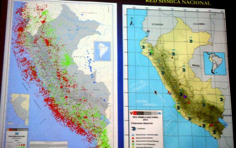 Las regiones del país con mayor actividad sísmica en la sierra y la selva son: Moyobamba, Rioja, Ayacucho, Huancayo, Cusco y el ColcaLima, 19 de setiembre de 2013.- “El Mapa Sísmico del Perú es el resultado de un esfuerzo de cuatro años que finalizó el año pasado y con el cual las instituciones encargadas de la gestión de riesgo pueden tomar las medidas correspondientes con el fin que la población esté mejor preparada ante la ocurrencia de eventos sísmicos”, señaló Hernando Tavera, responsable del área de Sismología del Instituto Geofísico del Perú (IGP), durante la presentación de este documento en la sede del Ministerio del Ambiente (MINAM).Los tres mapas trabajados por el IGP muestran la distribución espacial de todos los eventos sísmicos ocurridos en el territorio peruano entre 1960 y el 2011, clasificados según a su profundidad de ocurrencia. “A partir de este mapa uno entiende cuáles son los sismos que afectaron más a la población. Las ciudades de la Costa son las más golpeadas por sismos de regular y alta intensidad. Mientras que en el interior del país las ciudades con mayor ocurrencia de sismos son Moyobamba, Rioja, Ayacucho, Huancayo, Cusco, y la zona del Cañón del Colca, en Arequipa”, informó el Tavera.Los documentos cartográficos fueron entregados a la Dirección de Investigación e Información Ambiental y la Dirección de Ordenamiento Territorial del MINAM, cuyo director, Fernando Neyra, destacó que la información del mapa es importante para encaminar el trabajo sobre la gestión de riesgo en el país. Participaron de la ceremonia funcionarios del IGP y el MINAM; así como representantes de la Red Peruana de Investigación Ambiental (RedPeIA), el Sistema Nacional de Información Ambiental (SINIA), el Instituto de Defensa Civil (INDECI), la Dirección de Hidrografía y Navegación (DHN), SOS Emergencias y Desastres, la Municipalidad de Lima, entre otros.