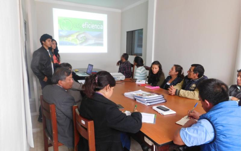 El Ingeniero Ambiental juntamente con la práctica de Ingeniera Ambiental de la Dirección Ejecutiva de Gestión Ambiental, reunieron a todo el personal de la Autoridad Regional Ambiental de Amazonas para darles una capacitación sobre ecoeficiencia.