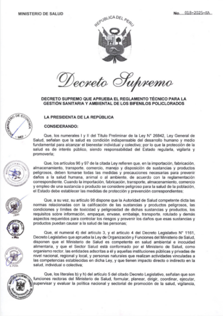 Bifenilos Policlorados (PCB) a fin de proteger la salud de las personas y promover la mejora de