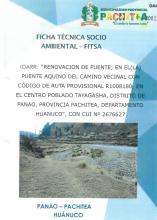 “Renovación De Puente; en el(la) puente Aquino del camino vecinal con código de ruta provisional R1008180, en el centro poblado Tayagasha, Distrito de Panao, Provincia Pachitea, Departamento Huánuco