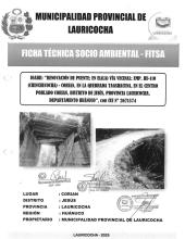 “Renovación de puente; en el(la) camino vecinal Ruta 1001245 Tramo: Emp. Hu-1088 – Emp. R1001243, Distrito de Pillco Marca, Provincia de Huánuco, Departamento de Huánuco en el centro poblado Vicsacocha, Distrito de Pillco Marca, Provincia Huánuco, Departa