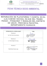 "Reparación de plataforma y cuneta; en el(la) camimo vecinal tramo Huanchag - Piruro-Chagragoto y Ramales del distrito de Panao, provincia Pachitea, departamento Huánuco"