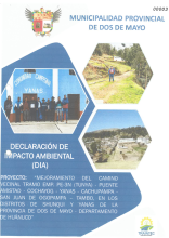 Mejoramiento del camino vecinal tramo emp. pe-3n (Tunya)-Puente Amistad-Cochayog- Yanas-Cachupampa-San Juan de Ogopampa-Tambo, en los distritos de Shunqui y Yanas de la provincia de Dos de Mayo - departamento de Huánuco
