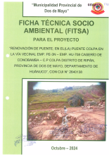 "Renovación de puente; en el (la) via vecinal ruta hu-682 (Santa Rosa y Huamachacra) en el centro poblado Santa Rosa, distrito de Puños, provincia de Huamalíes, departamento Huánuco" cui: 2639969